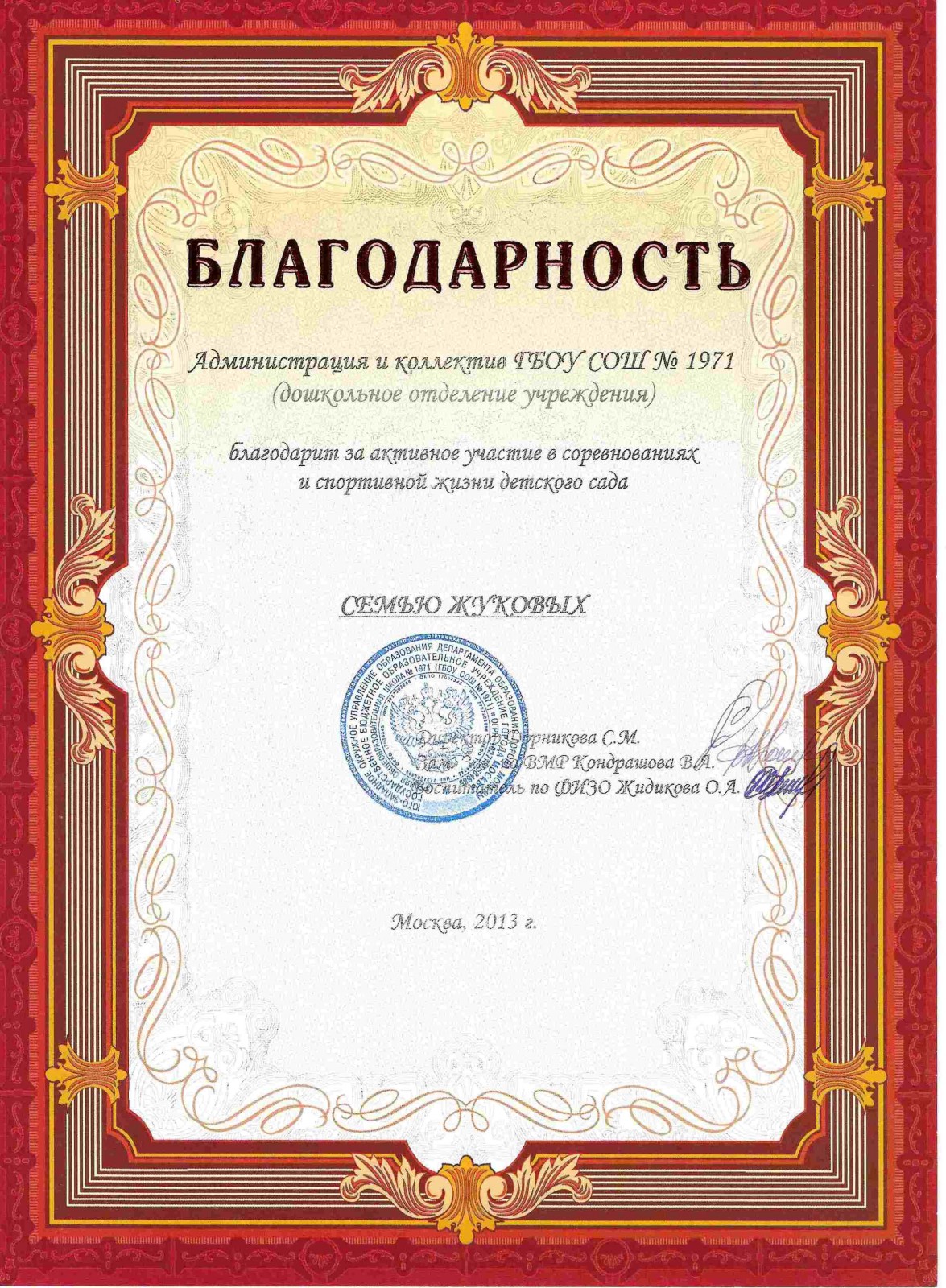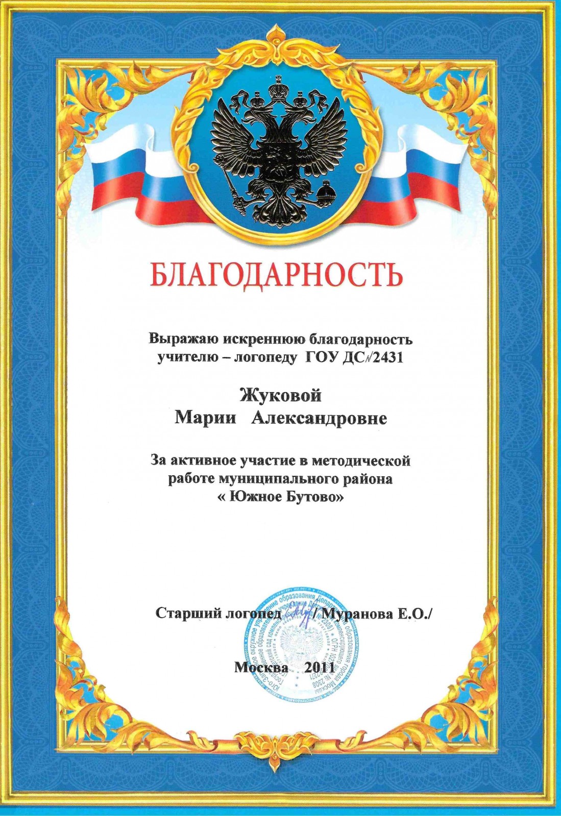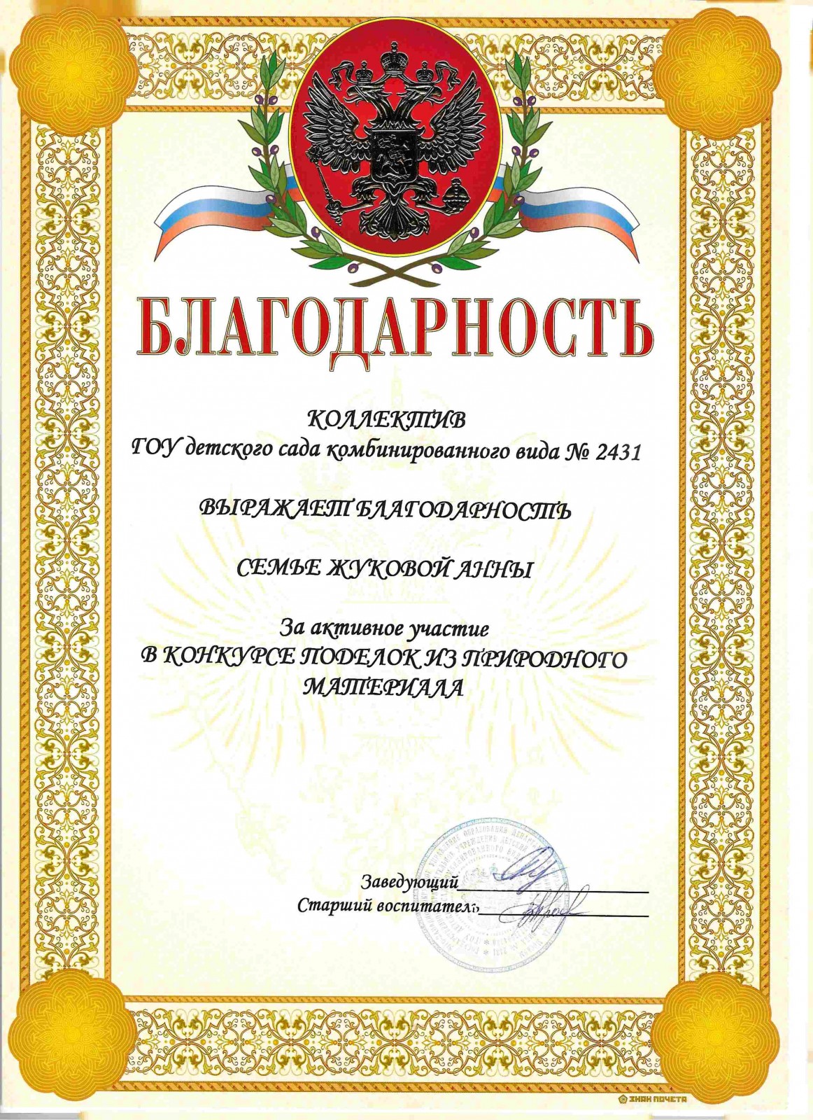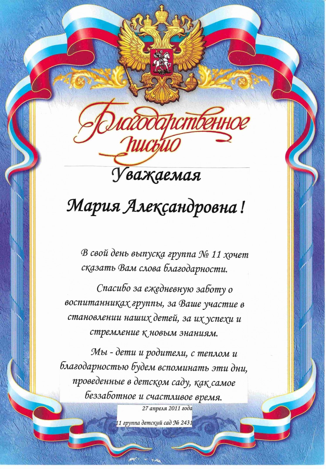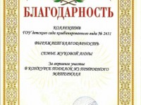 Благодарность Детский сад