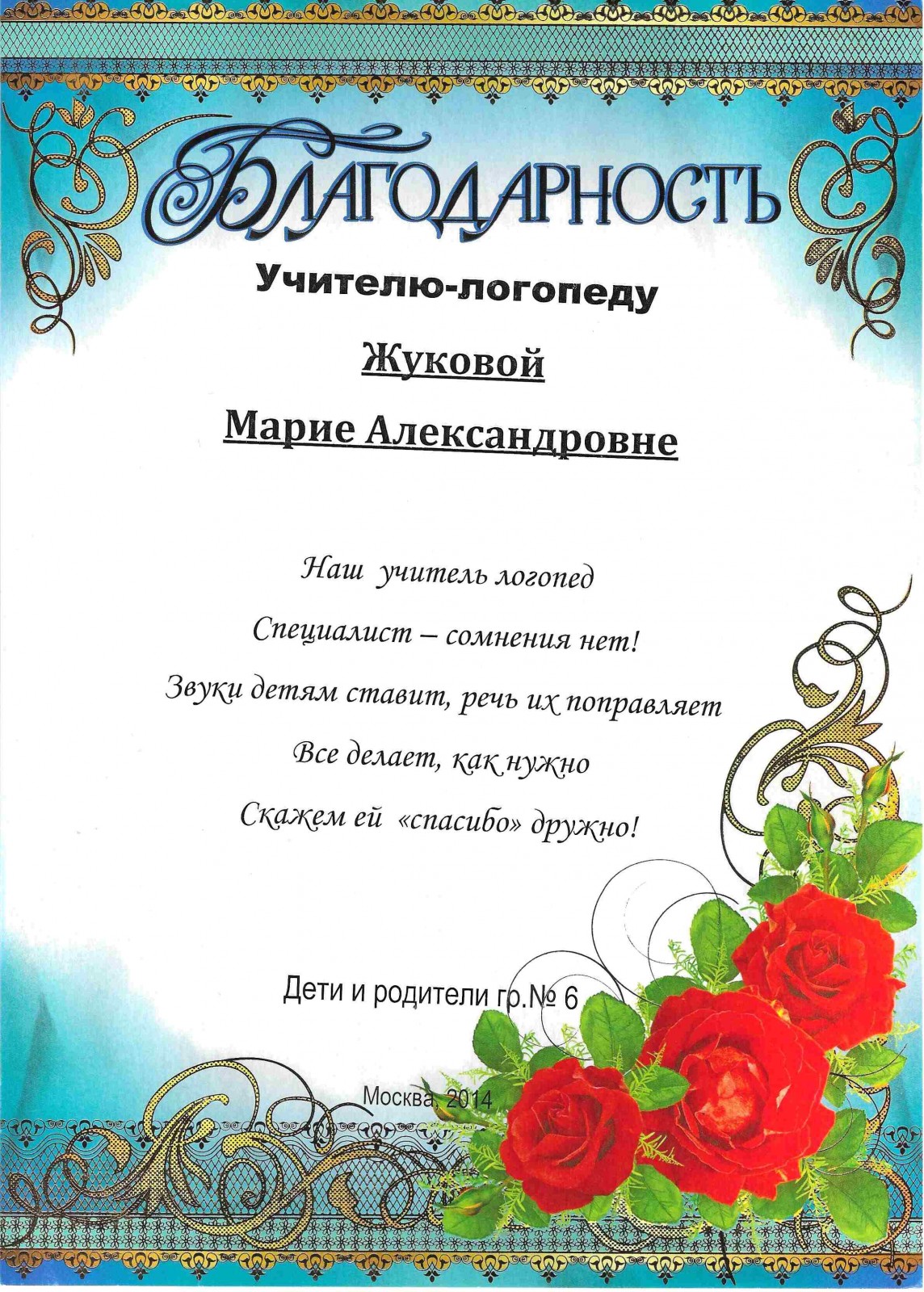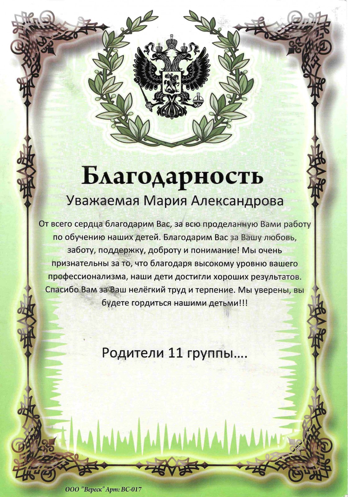 Благодарность Родители
