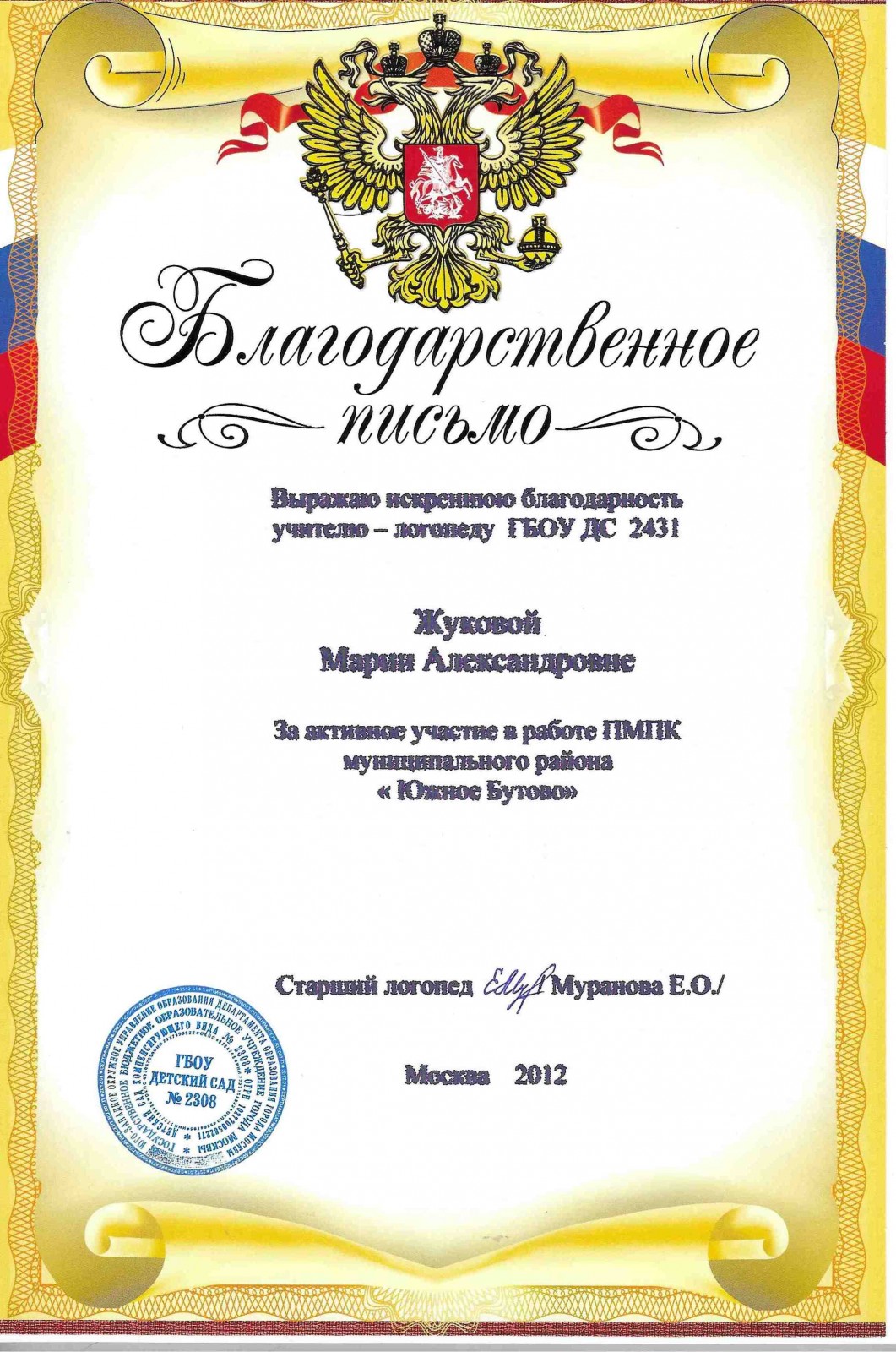 Благодарность ПМПК
