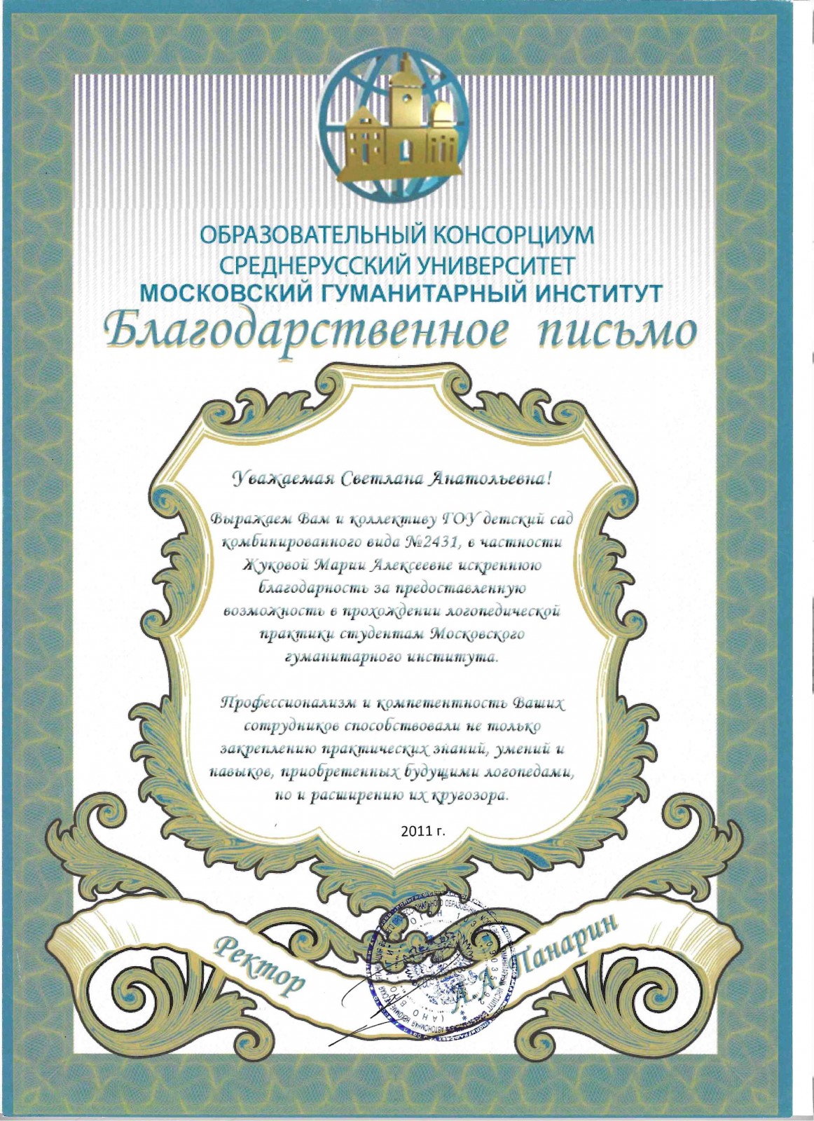 Благодарность Институт