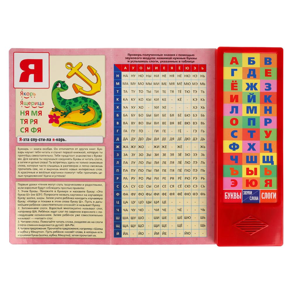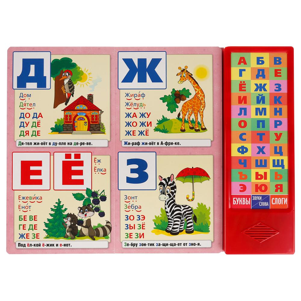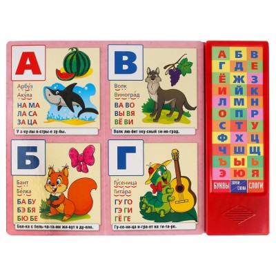 Яркий "Букварь" М.А. Жуковой станет прекрасным учебным пособием для Вашего малыша. Озвучивала электронный модуль лично. Можно прослушать как произносятся буквы, звуки, слоги и слова. Надёжная методика позволяет эффективно обучать ребёнка чтению в игровой форме.Букварь имеет 3 режима, которые помогают в развитии ребёнка. При нажатии на кнопки в режиме "Буквы" малыш будет слышать название букв алфавита. Чтобы прослушать звуки (как звучат буквы и слова), необходимо перейти в режим "Звуки/Слова", теперь при нажатие кнопок букв, ребёнок будет слышать произношение звуков. А для того, чтобы прослушать звучание слогов, обозначенных возле каждой буквы, нужно перейти в режим "Слоги". Теперь, в поочередном нажатии на кнопки с буквами, Вы будете слышать произношение слогов. Книга имеет 3 развивающие функции: учим буквы, учим произносить слоги, учим читать. Развивает память, слух, воображение, координацию движений.