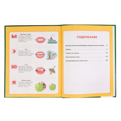 - содержание: азбука, чтение по слогам, пальчиковые игры, артикуляционная гимнастика
