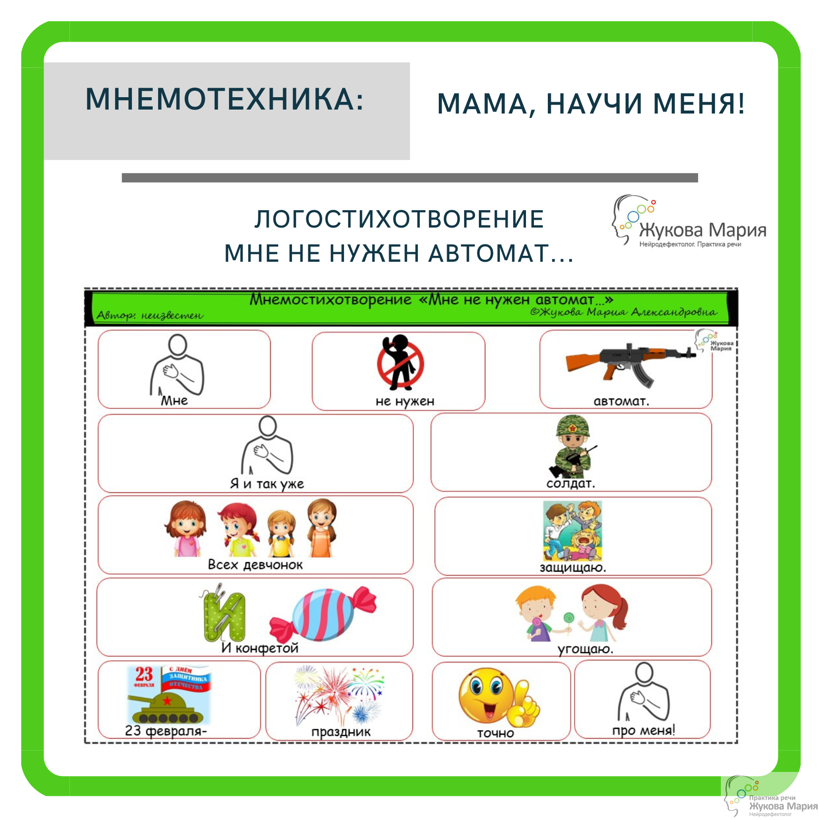 Продолжаем учить стихи к 23 февраля. Простой шуточный стишок в мнемотехнике про будущих Защитников нашей Родины.