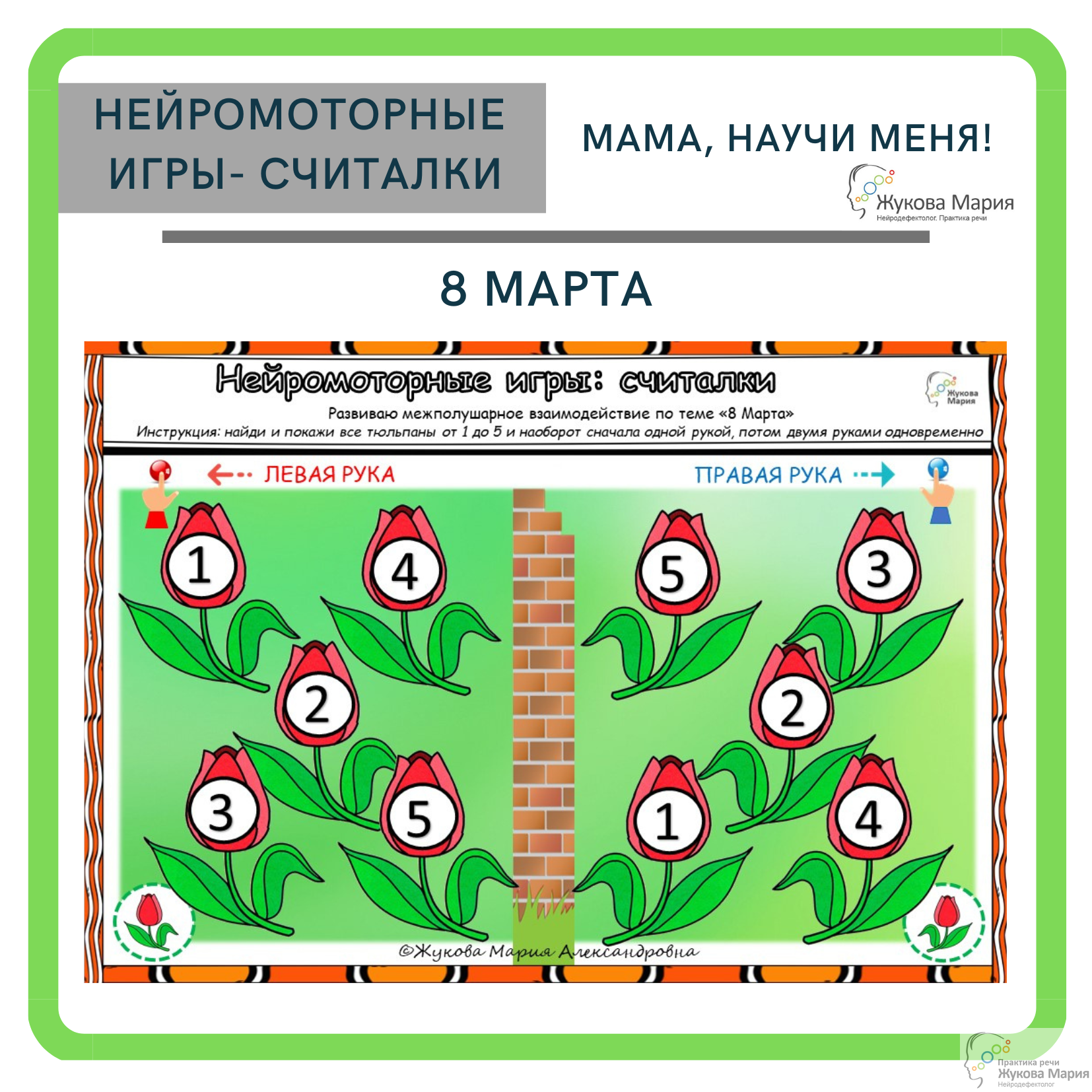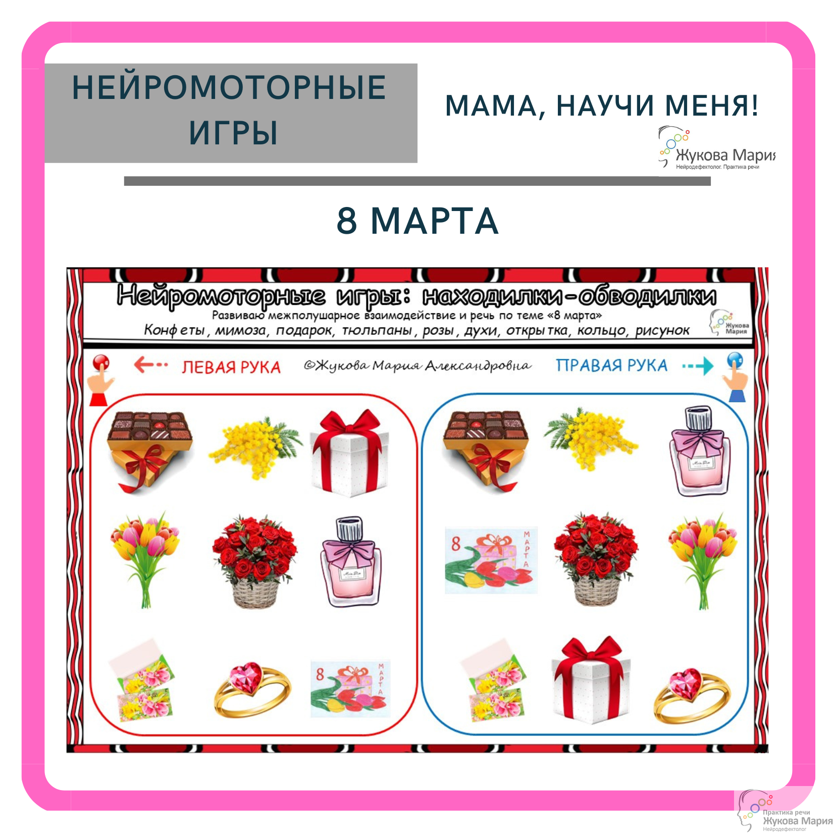 Развиваем межполушарное взаимодействие, двуручную координацию и речь по лексической теме "8 марта".