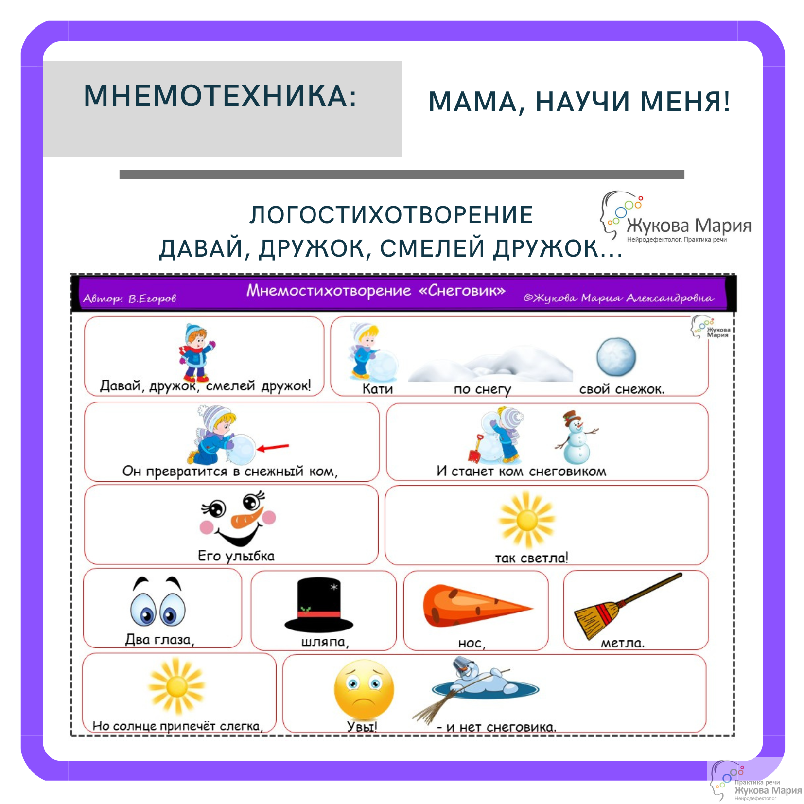 Представляю вам стихотворение «Снеговик» В. Егорова в мнемотехнике и с движениями.