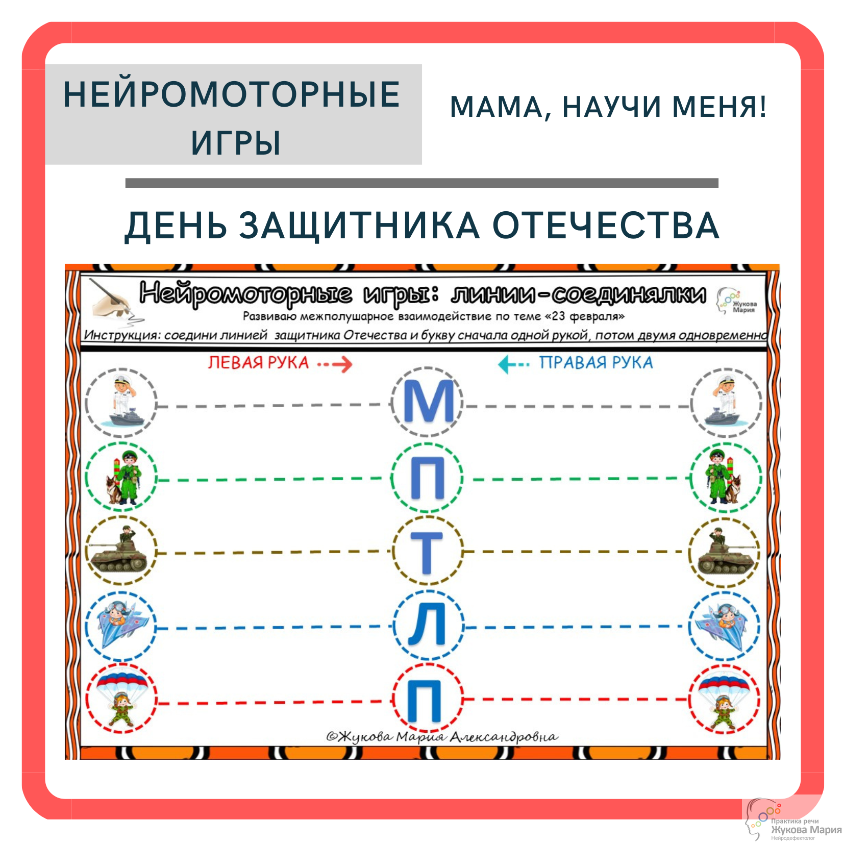 Представляю моё пособие из серии нейромоторных игр «Линии-соединялки» по лексическим теме: День защитника Отечества.