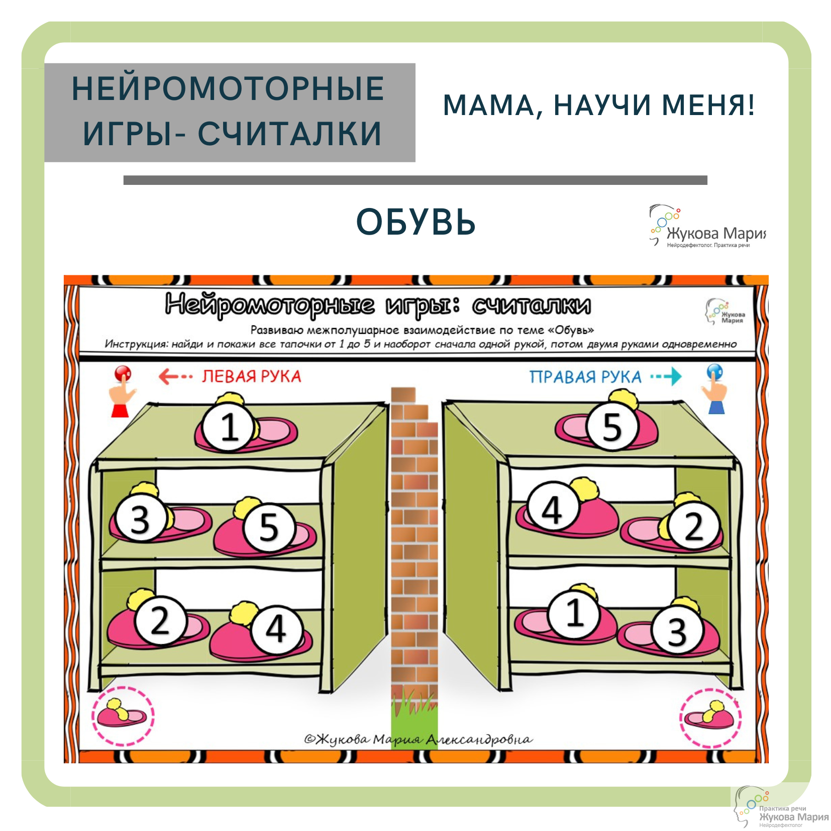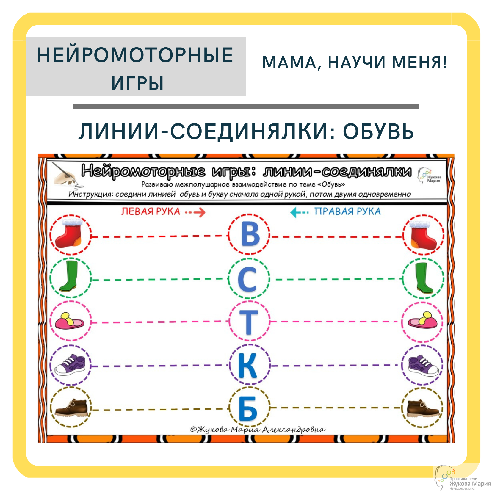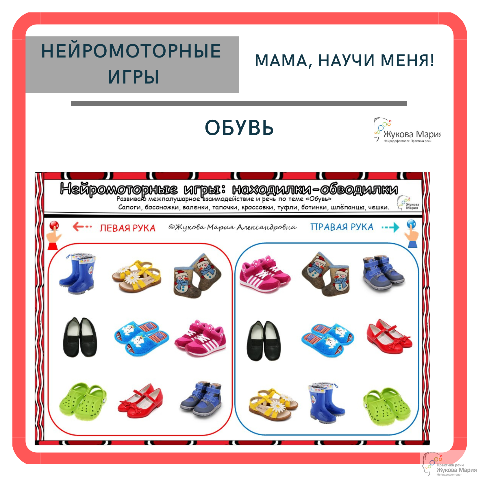 Развиваем межполушарное взаимодействие, двуручную координацию и речь по лексической теме "Обувь".