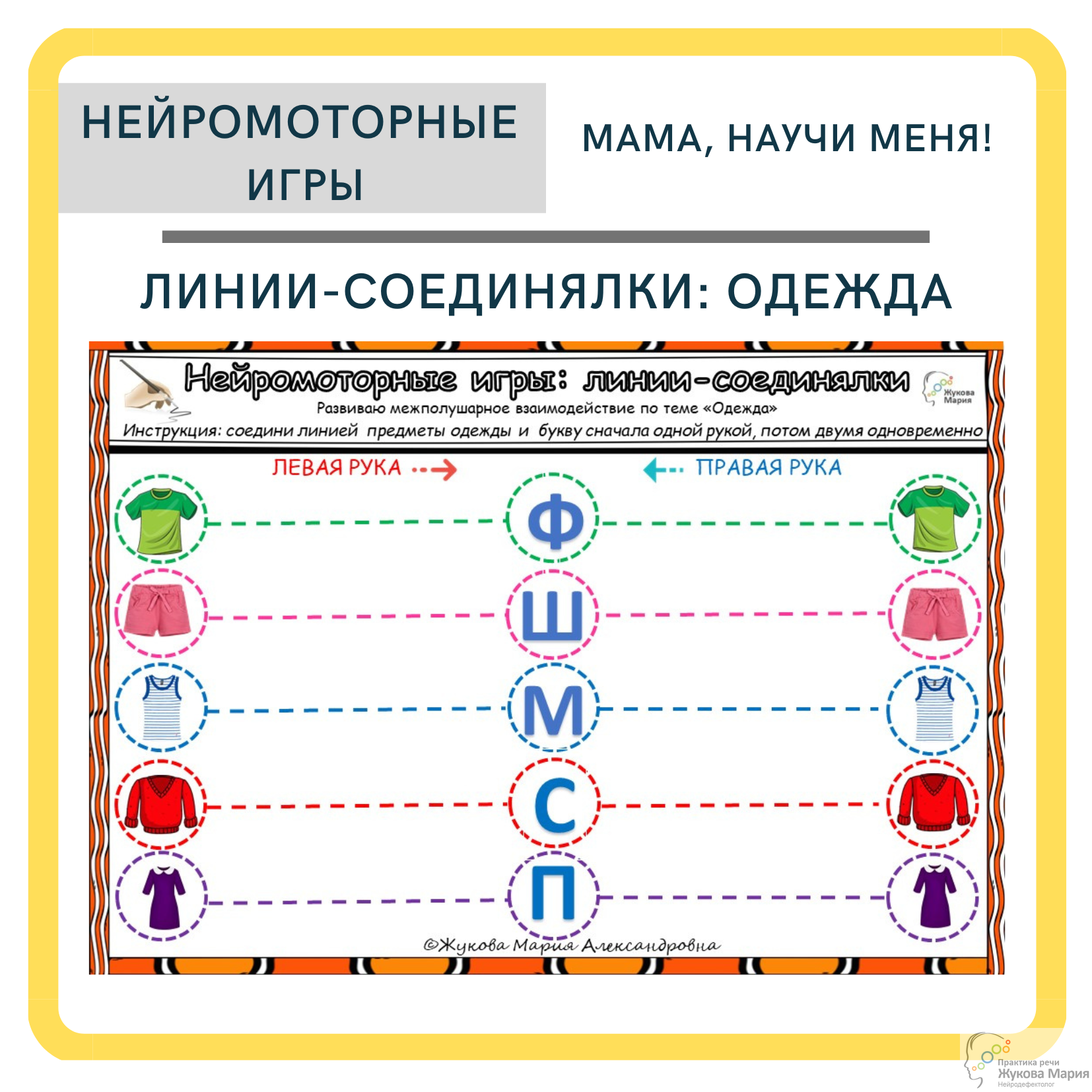 Представляю моё пособие из серии нейромоторных игр «Линии-соединялки» по лексическим теме: одежда.