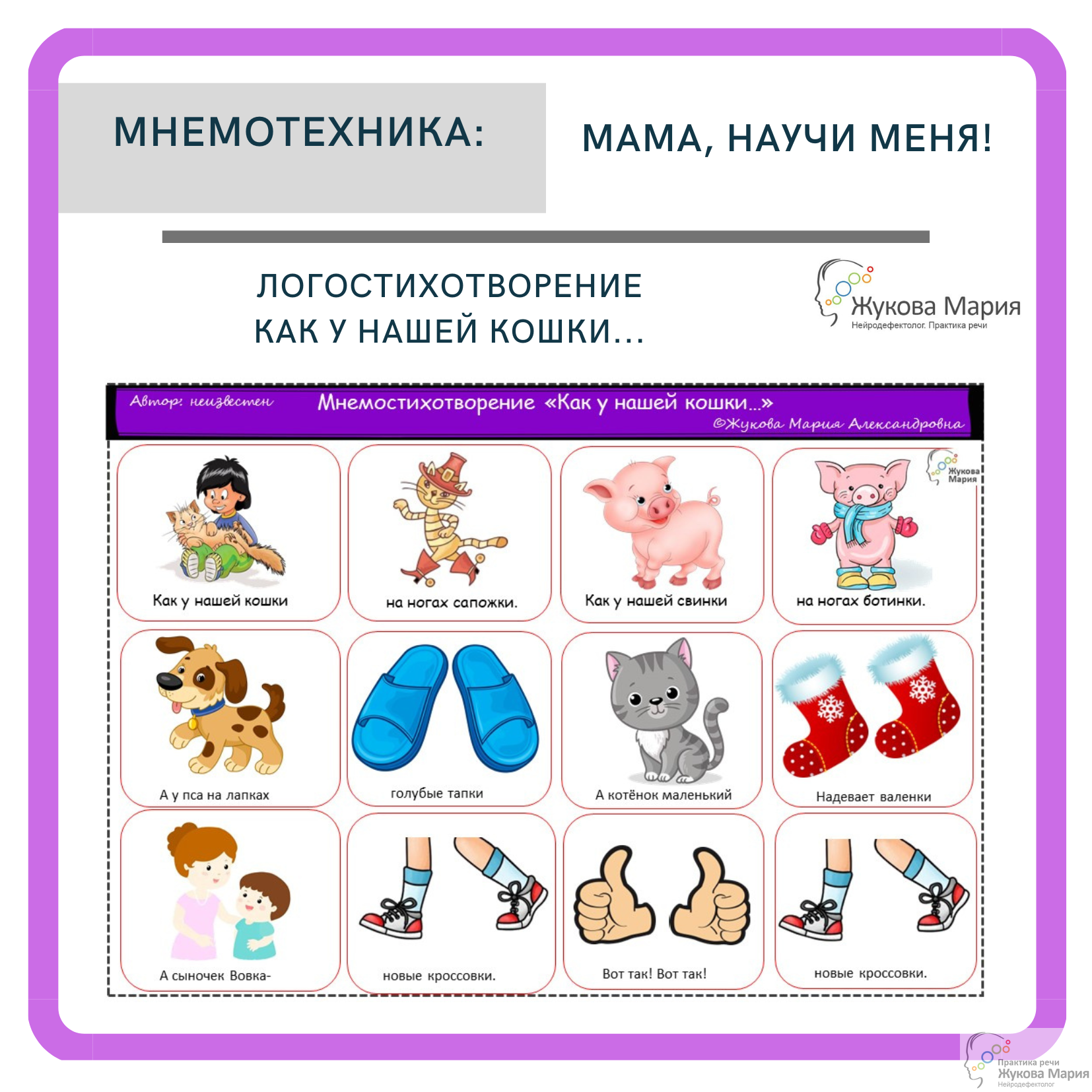 Мнемостихотворение по лексической теме "Обувь": "Как у нашей кошки на ногах сапожки....