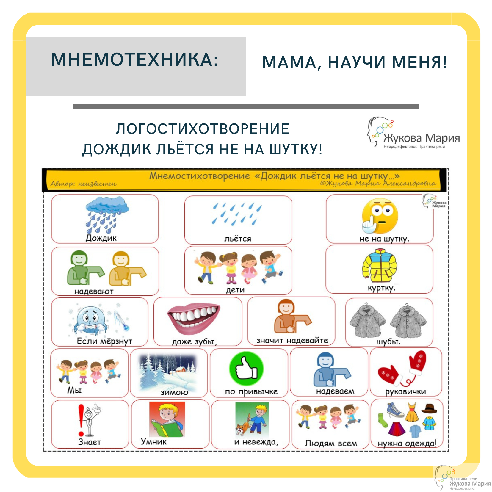 Мнемостихотворение по лексической теме "Одежда": "Дождик льётся не на шутку..."