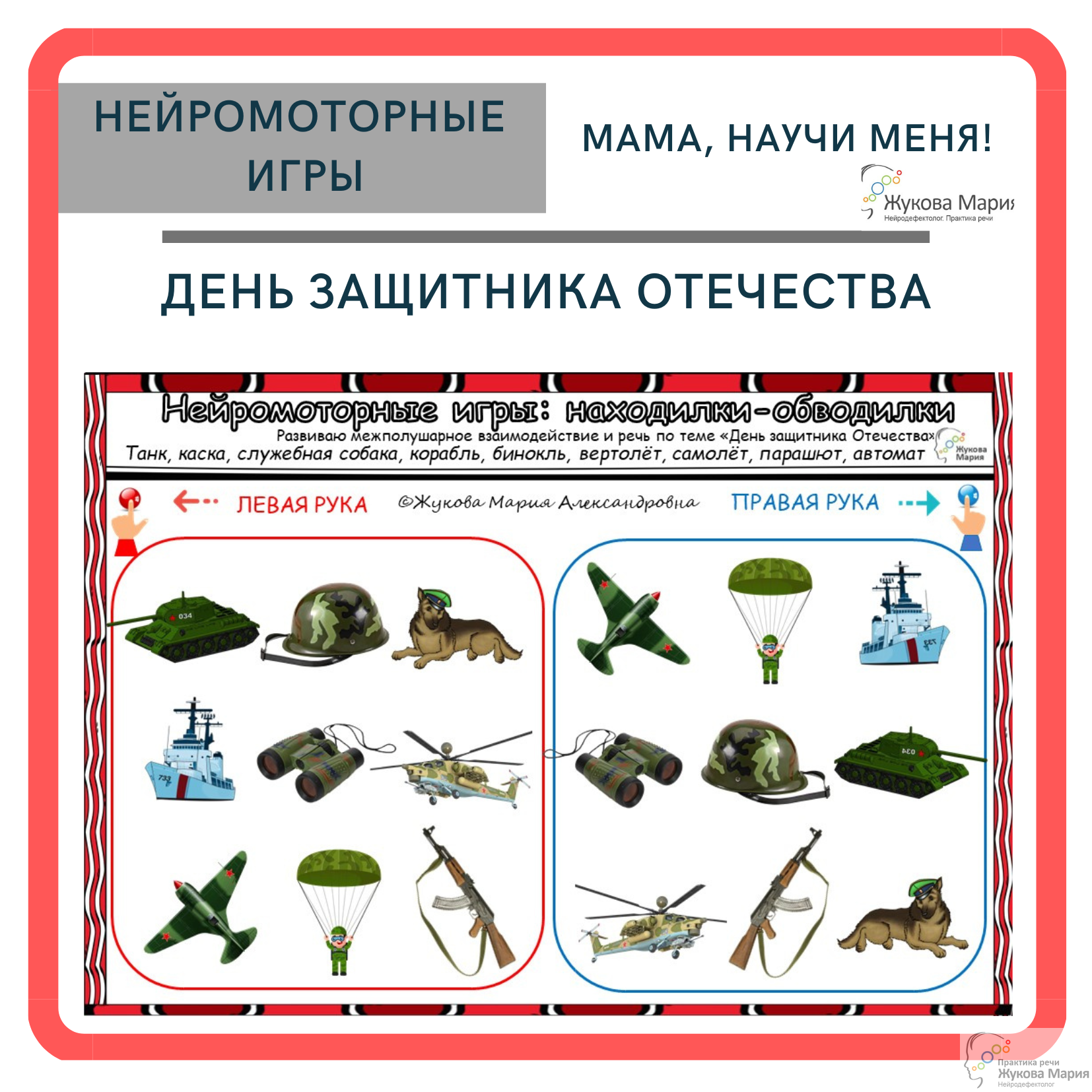 Развиваем межполушарное взаимодействие, двуручную координацию и речь по лексической теме "День защитника Отечества"