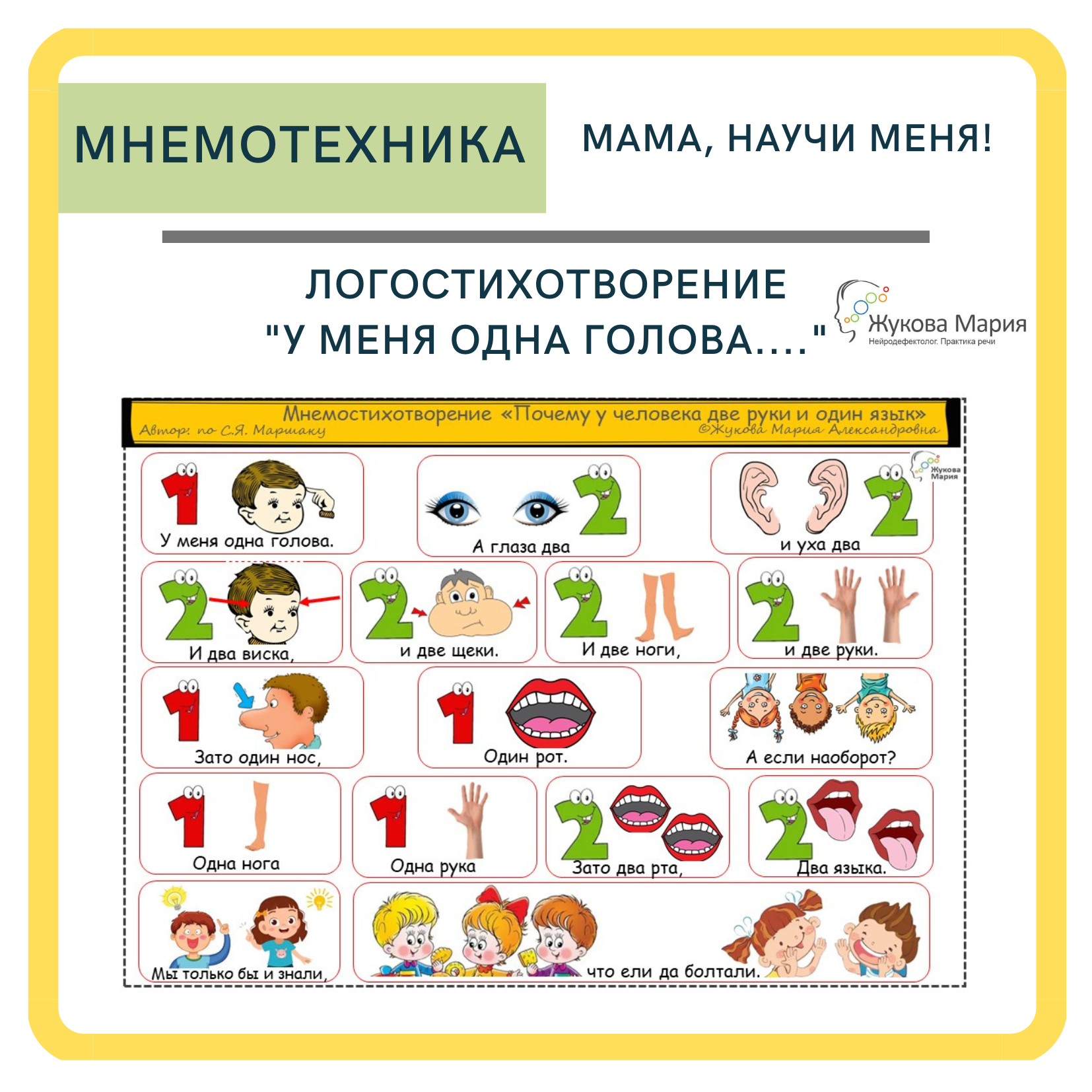 Поможет запомнить названия частей тела и ориентироваться в схеме тела.
