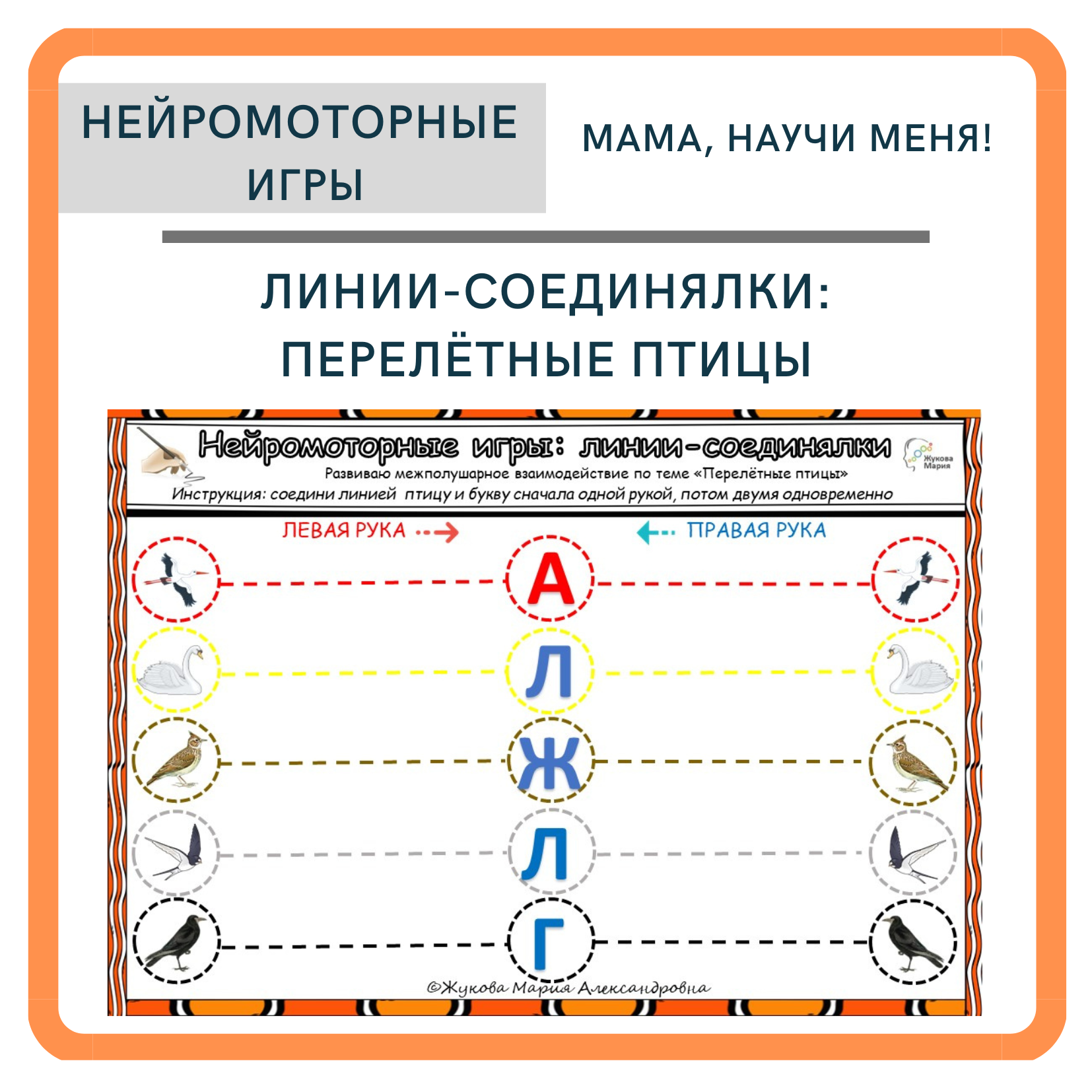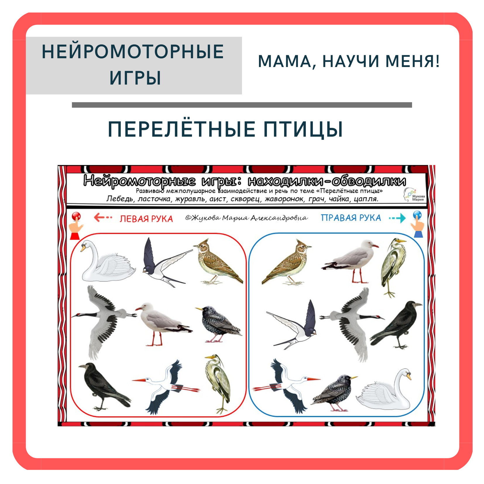 Развиваем межполушарное взаимодействие, двуручную координацию и речь по лексической теме "Перелётные птицы".