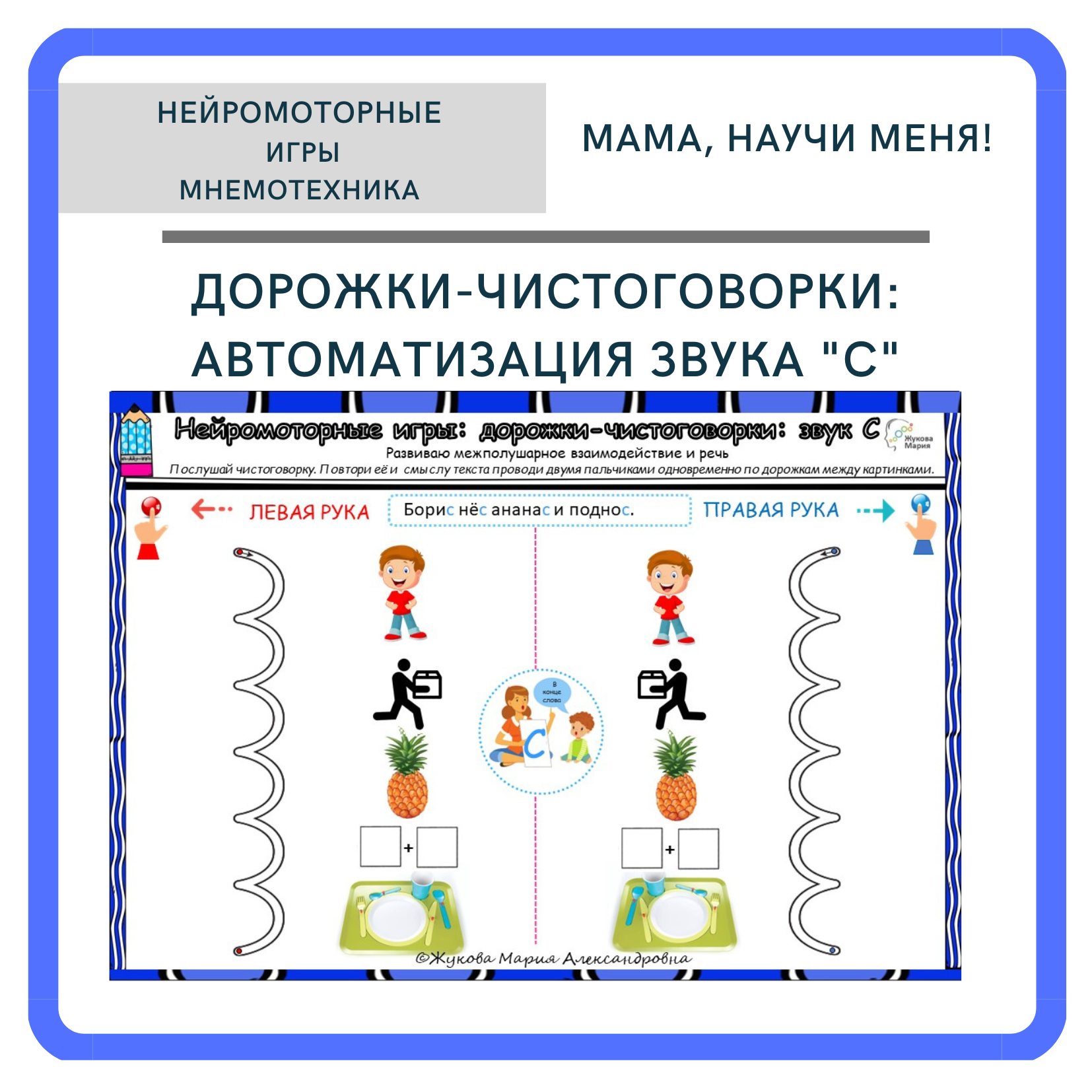 Нейромоторные игры: дорожки- чистоговорки- это игровые упражнения в мнемотехнике для автоматизации звука «С» и развития межполушарных связей.