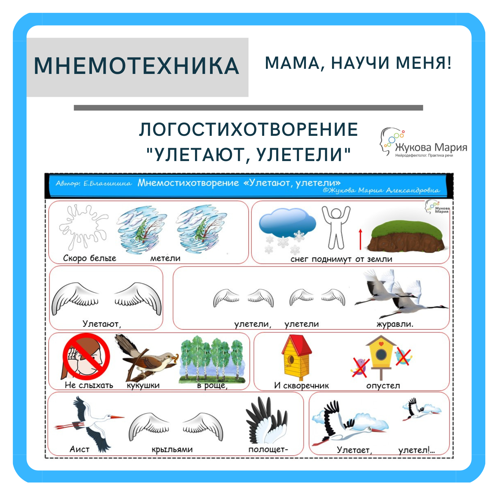 В рамках изучения лексической темы «Перелётные птицы» я решила проиллюстрировать в мнемотехнике отрывок из стихотворения Е. Благининой– «Улетают, улетели».