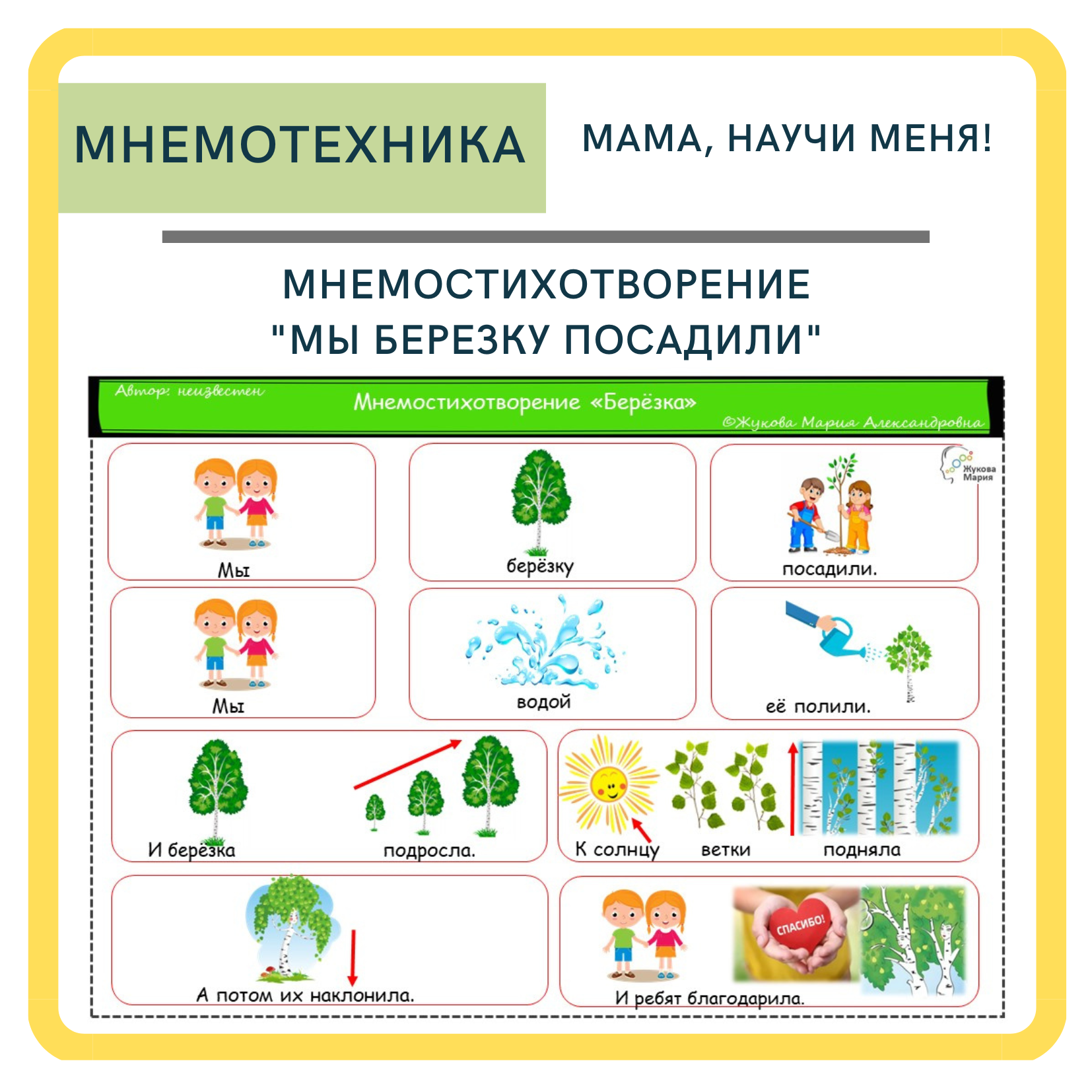 Предлагаю для заучивания мнемостихотворение " Мы берёзку посадили.."