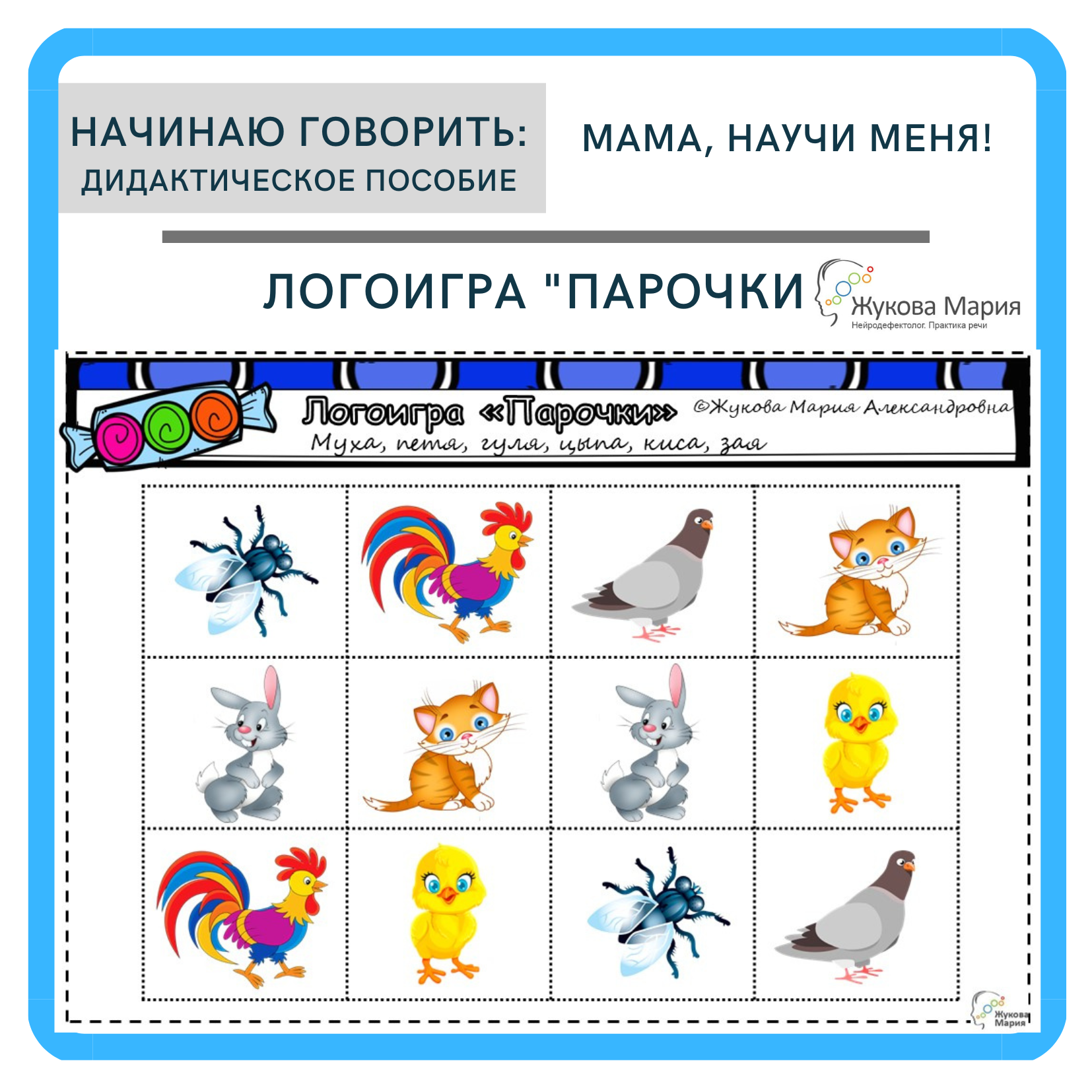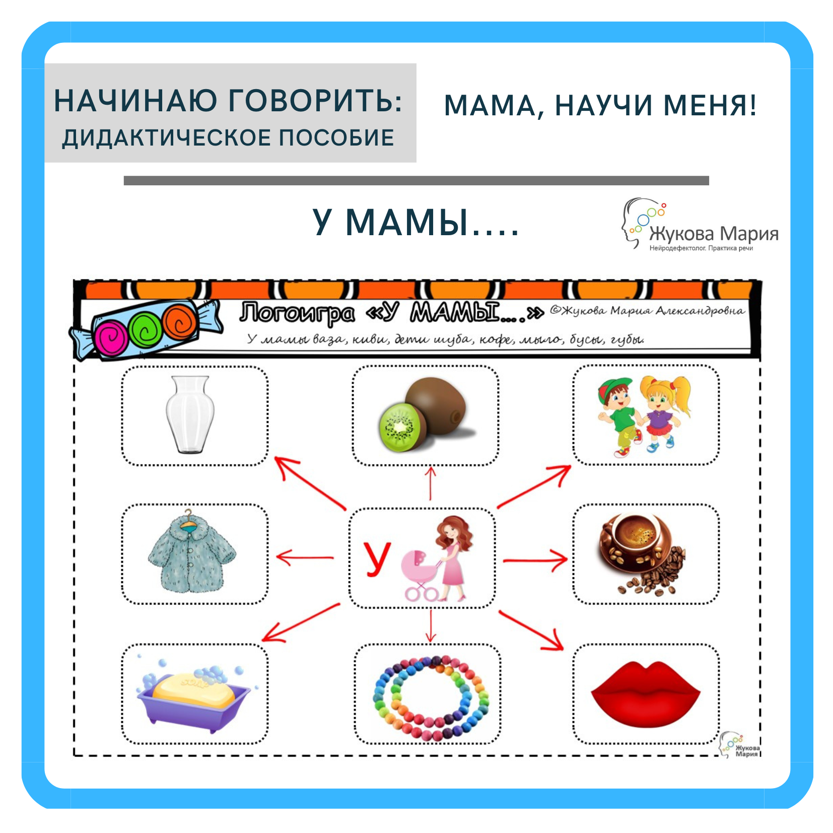 Предлагаю вашему вниманию моё дидактическое пособие из серии «Начинаю говорить»: дидактическая игра "У мамы...?". Оно предназначено для формирования простой фразы из слов первого типа слоговой структуры у детей с тяжёлыми нарушениями речи.