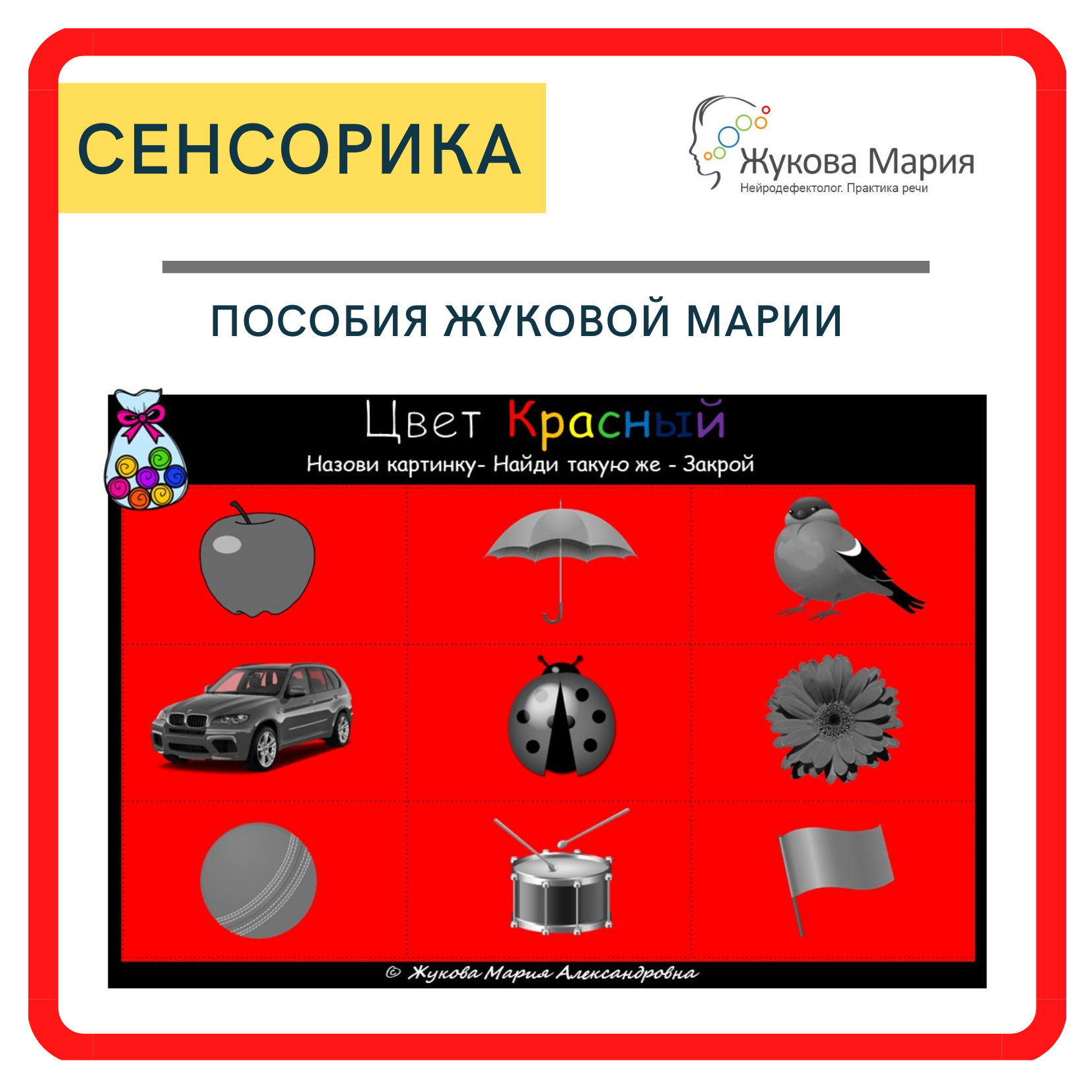 Предлагаю Вашему вниманию моё игровое пособие по сенсорике "Цвет- красный"