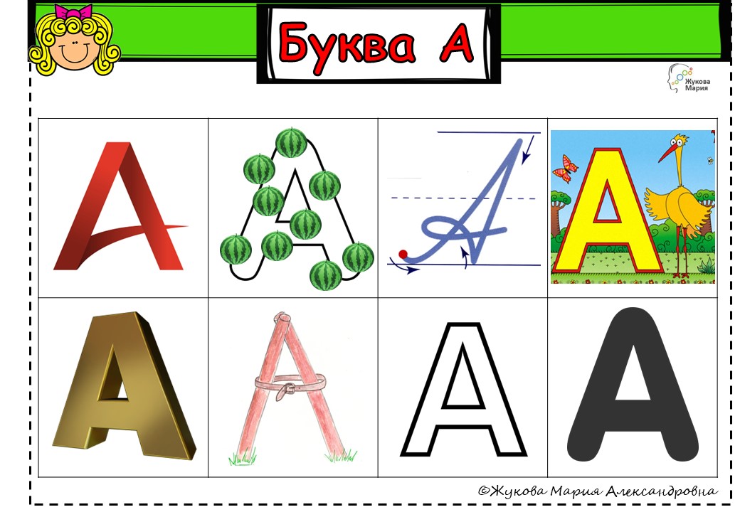 Уточняйте, на что похожа буква А: две палочки наискосок и между ними поясок.